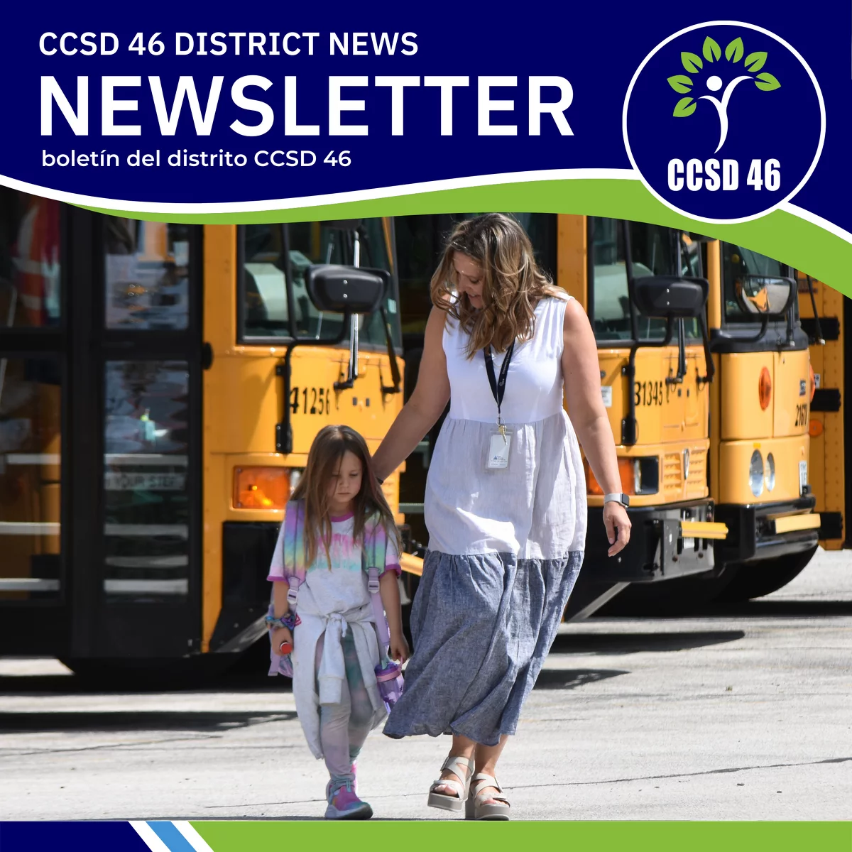 Nos complace presentarles la última edición de nuestro boletín electrónico del distrito. Durante el año escolar, cada nueva edición se publica a nuestra comunidad familiar a través de ParentSquare. El boletín también se publica aquí en nuestro sitio web (d46.org/news/). Estarán llenos de noticias y actualizaciones de varios departamentos, y están destinados a mantener a nuestras familias y la comunidad al día sobre lo que está sucediendo en nuestro distrito escolar.